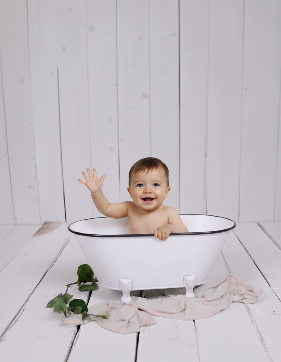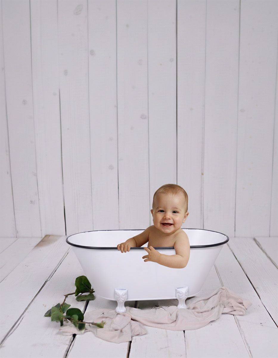 Metal bathtub, handmade and decorated in a vintage style. This product, due to its dimensions, is ideal for newborn sessions and baby sessions. Thanks to the waterproofing treatment, this bathtub can be filled. We also recommend using our synthetic foam to simulate soap bubbles and rubber duckies to add a fun touch to your photos.