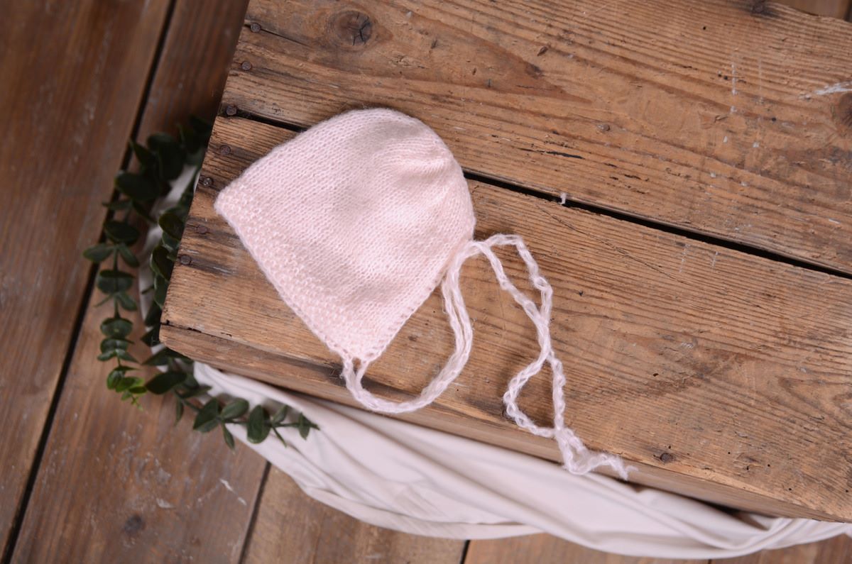 Smooth hat knitted with soft mohair threads. Due to its measurements, this product is ideal for all your newborn sessions: both for sessions on the bean bag and for placing the baby on a stand or bed or in a bowl.