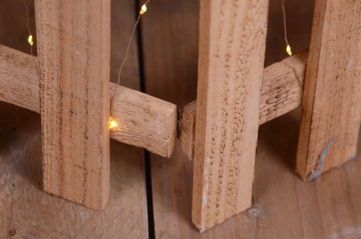 Decorative rustic fence adorned with small LED lights, foldable in half. Ideal for all types of Christmas settings, both in the studio and outdoors.