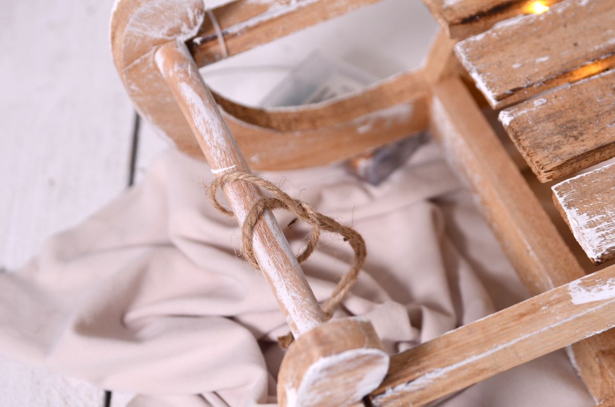 Rustic sleigh decorated with small LED lights. Ideal for all kinds of Christmas scenes, both in the studio and outdoors.