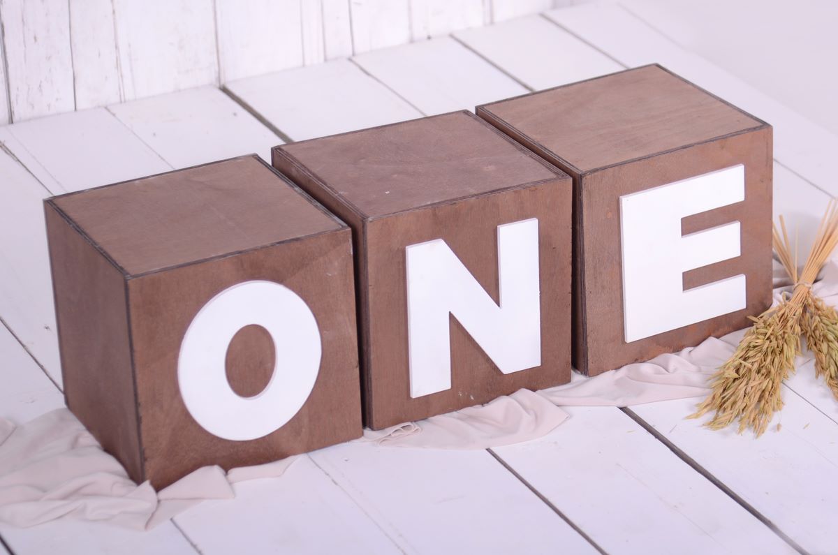 Set consisting of three rustic cubes, handmade from natural products. They can be used to spell out the words "one” and "two”. This product is ideal for decorating all kinds of smash cake sessions. Perfect for both studio and outdoor sessions.