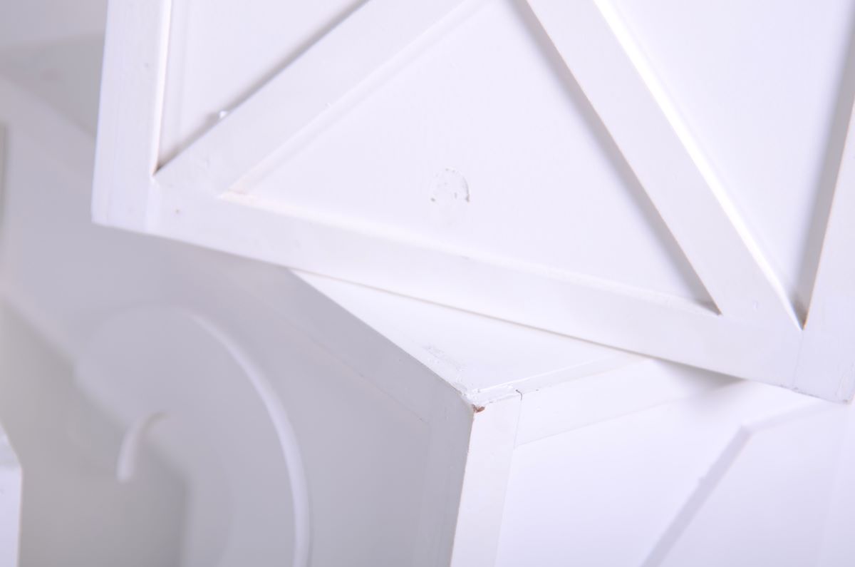 Colour: white - this wooden product has been painted and decorated in a rustic style, so it is not a plain, flawless colour, but has an aged appearance. It may have different shades of colour in the knots or grain of the wood.