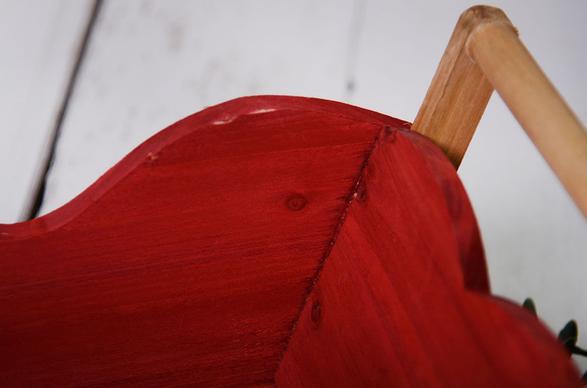 Colour: red, brown, and white – this wooden product has been painted and decorated in a rustic style, so it is not a smooth, flawless colour, but has an aged appearance.