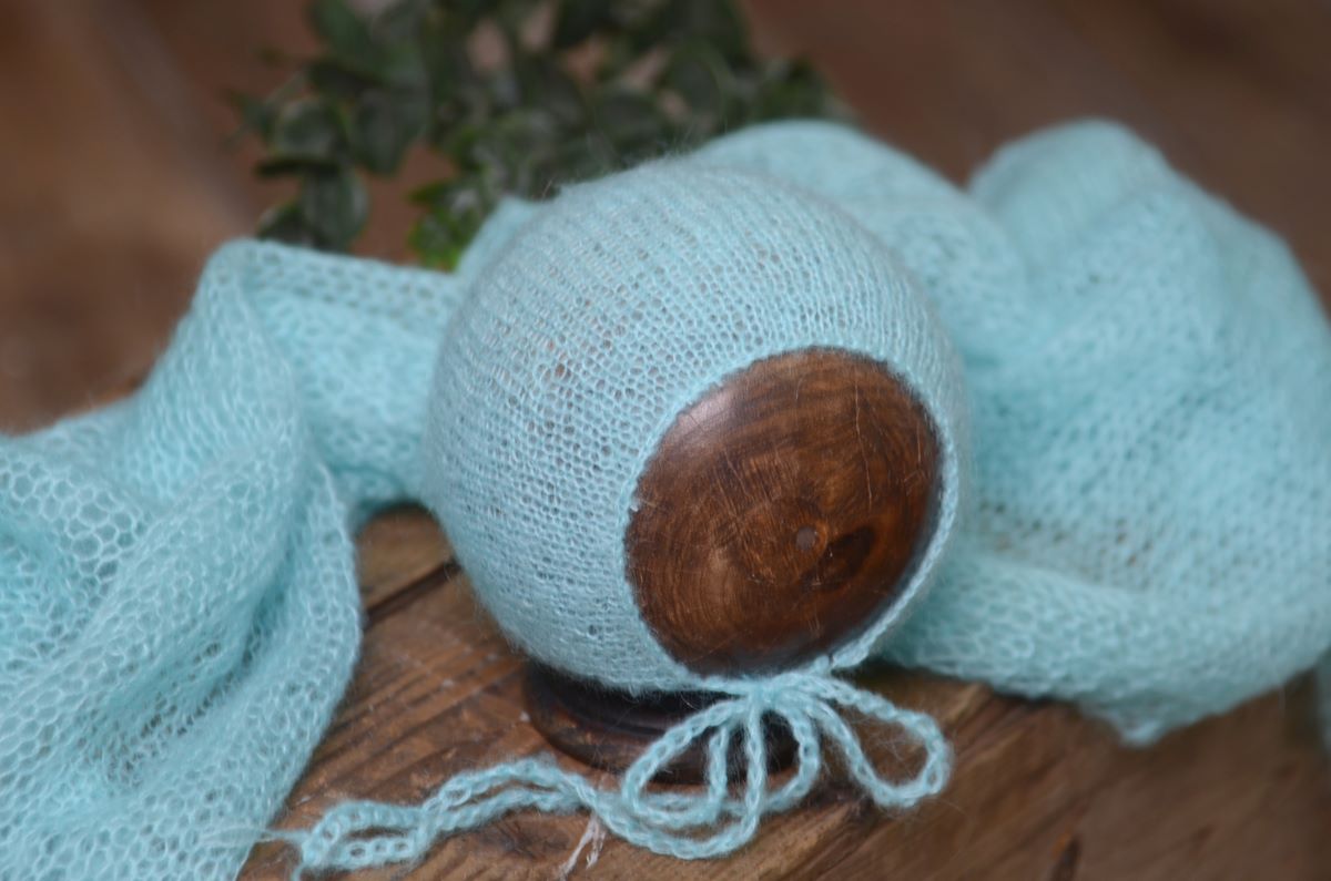 Incredible set consisting of a wrap and a hat woven with soft mohair wool threads in the same tone. This product is ideal for all kinds of photo sessions, from those sessions on the bean bag to those in which newborns are placed on stands or inside boxes or bowls. Due to its measures, this set is perfect for newborn sessions.